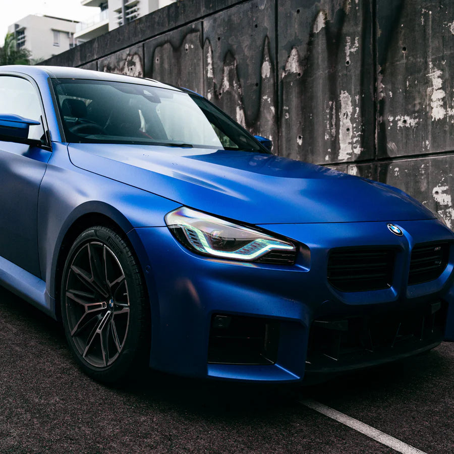 Enhance the already bold aesthetics of your G42 2 Series / G87 M2 Adaptive LED headlights with our Ice Blue DRL upgrade. Featuring large angled 3/4 style etched rings, your car is already striking, but our kit takes it to the next level with a Menacing race car-inspired look.