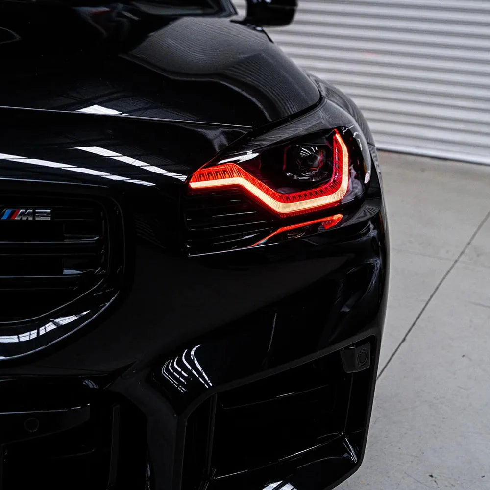 Enhance the already bold aesthetics of your G42 2 Series / G87 M2 Adaptive LED headlights with our Red DRL upgrade. Featuring large angled 3/4 style etched rings, your car is already striking, but our kit takes it to the next level with a Menacing race car-inspired look.